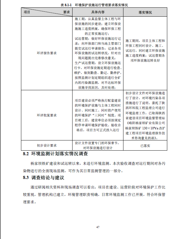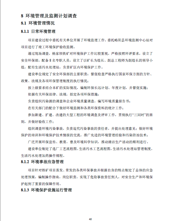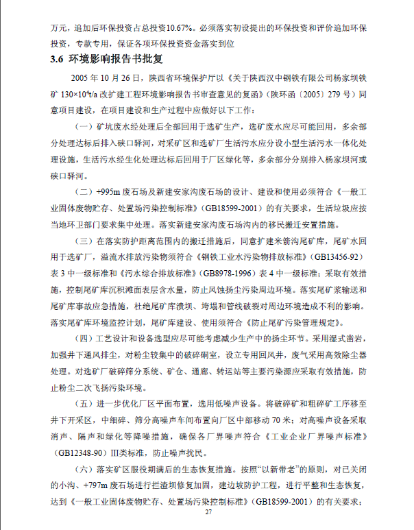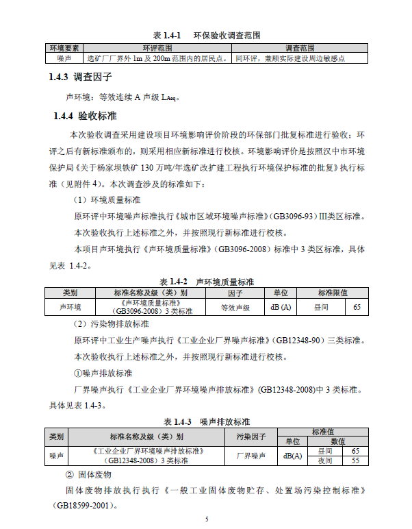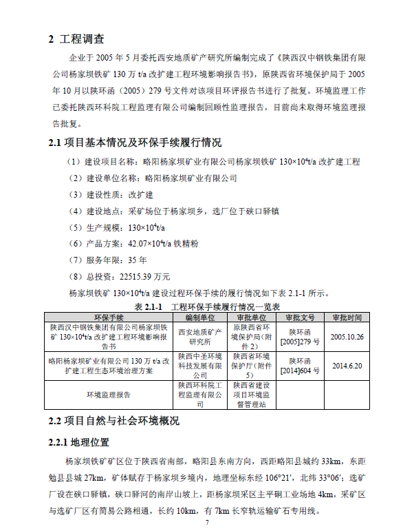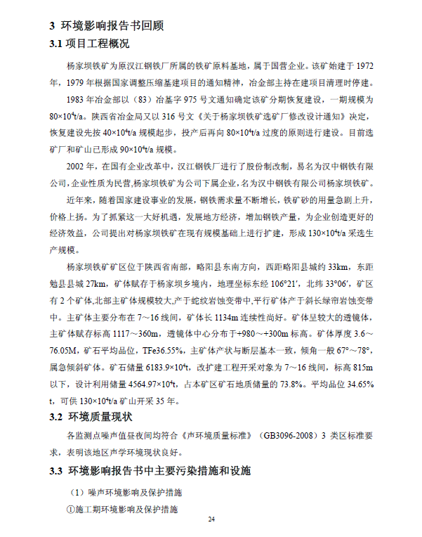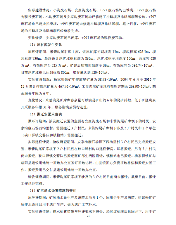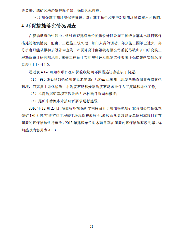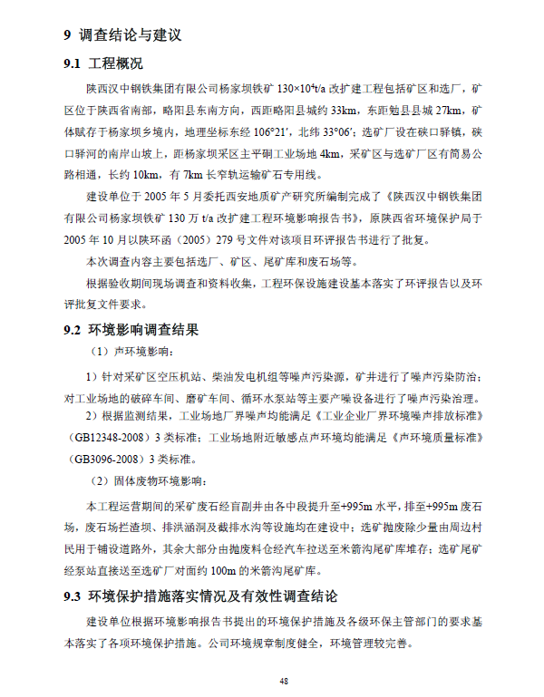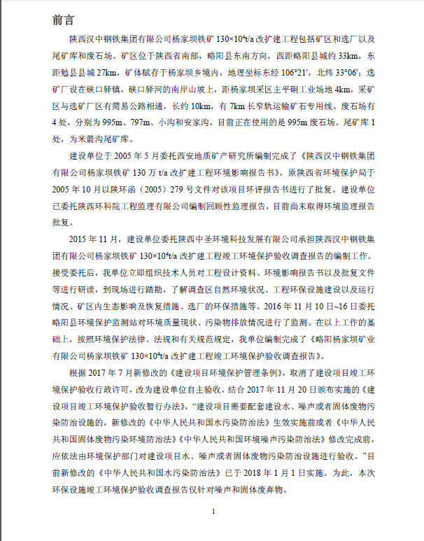附件:略陽楊家壩礦業有限公司楊家壩鐵礦130×104t/a改擴建工程(噪聲、固體廢物污染防治設施)竣工環境保護驗收調查報告