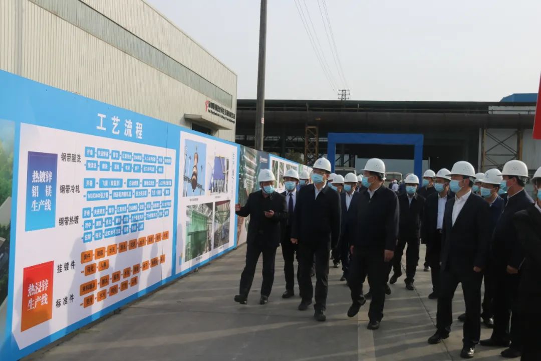 4月1日,2022年全市一季度“四個一批”重點項目觀摩組到公司冷軋熱鍍項目現場觀摩,市委書記鐘洪江,市委副書記、市長張燁,市人大常委會副主任、縣委書記黎建軍,縣委副書記、縣長羅國才等相關市縣領導參加。集團董事長王干文、公司總經理付漢新陪同。